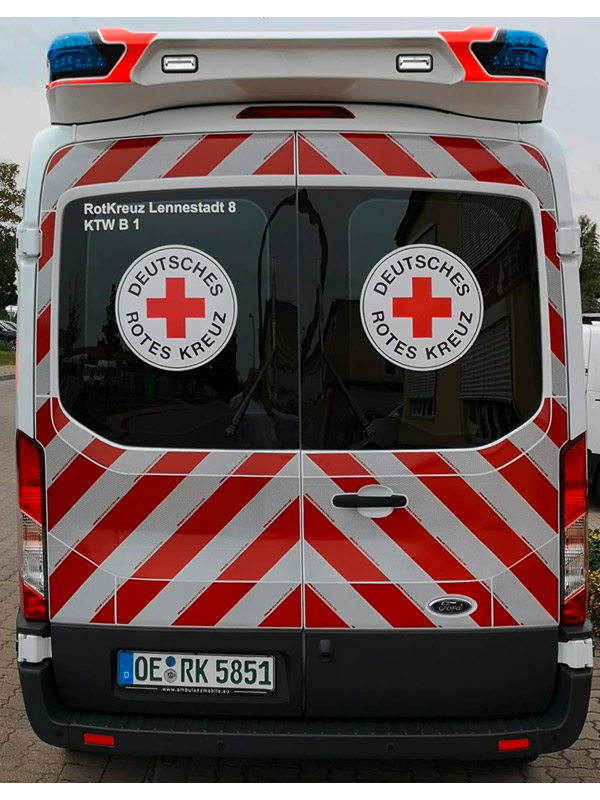 Hallo, ich bin „Der Neue“ und seit Kurzem im DRK Ortsverein Lennestadt aktiv. Ich bin ein Ford Transit mit einem Gewicht von 3,5 t und habe 130 PS unter der Haube.