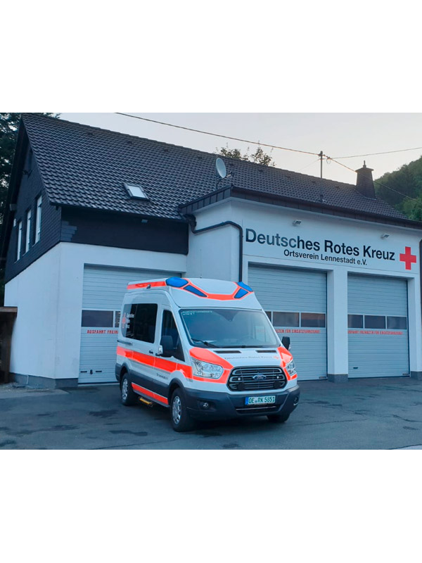 Hallo, ich bin „Der Neue“ und seit Kurzem im DRK Ortsverein Lennestadt aktiv. Ich bin ein Ford Transit mit einem Gewicht von 3,5 t und habe 130 PS unter der Haube.