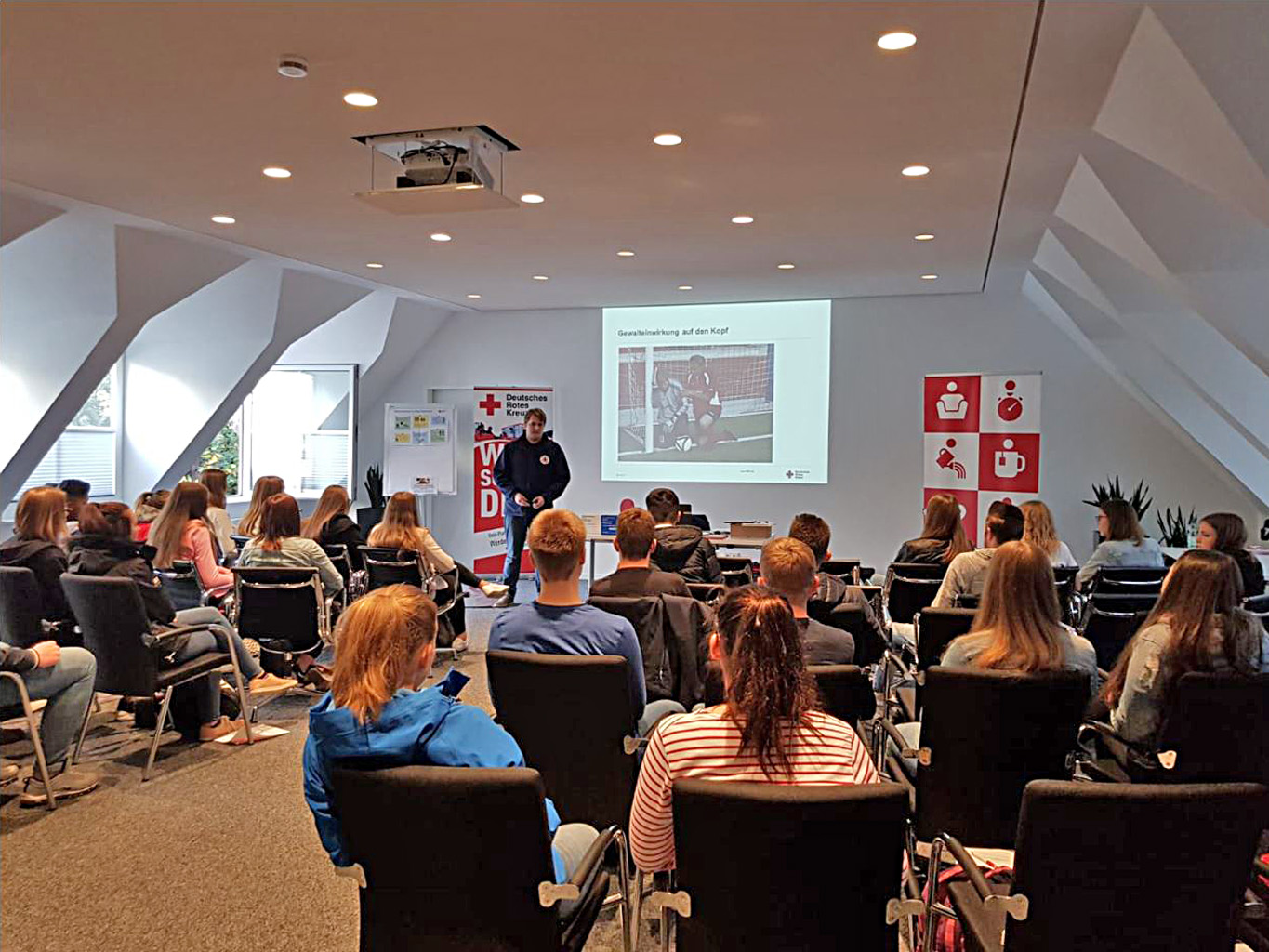 Der DRK-Ortsverein Lennestadt hatte in den Herbstferien gegen eine Spende der Sparkasse, fünf Ausbilder für die Erste-Hilfe-Kurse abgestellt.
