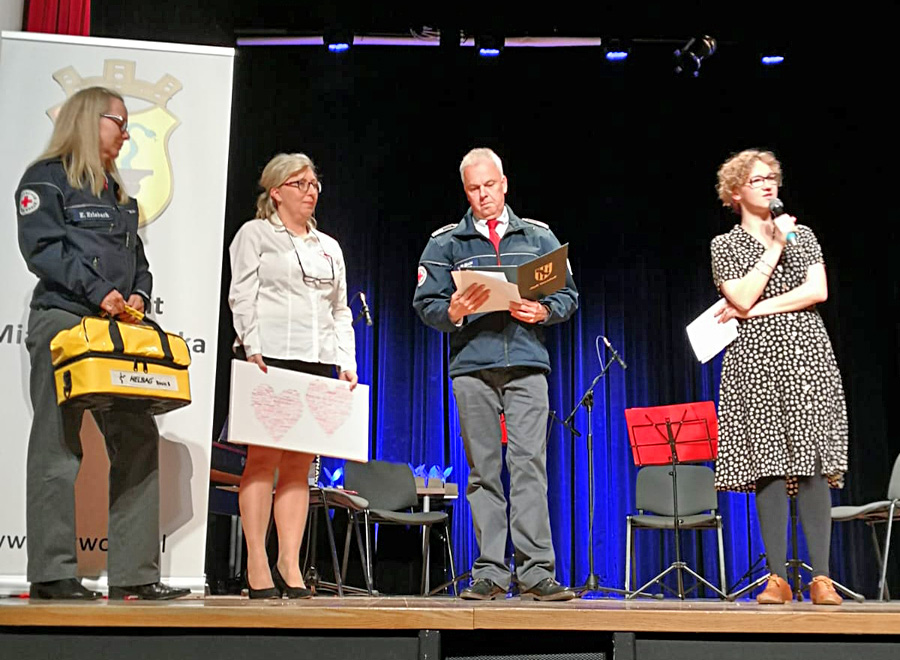 In dem von einem Streichquartett begleiteten Programm wurden ergreifende und sehr wertschätzende Worte, sowie Auszeichnungen überreicht. Stellvertretend für den Ortsverein Lennestadt nahm Rotkreuzleiter Winfried Erlebach eine Urkunde und Plakette für engagierte Dienste entgegen.