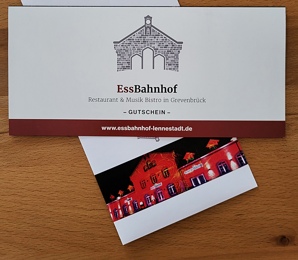Über einen 50€-Gutschein vom Ess-Bahnhof in Grevenbrück freuen sich nun Gudrun Göbel aus Lennestadt und Meinolf Schröder aus Finnentrop, die mit Ihrem Tipp genau richtig lagen.